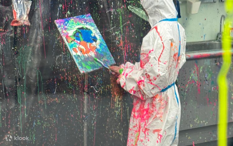 - 每位玩家会穿着防护衣与手套脚套,进到绘画空间,无拘束的以各种道具作画,墙壁、身上防护衣都可以是画板