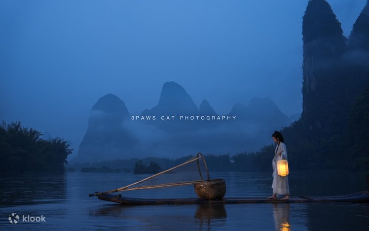 我们的拍摄点:在兴坪镇(二十元人民币背景)江面上,距阳朔有40分钟车程,距阳朔高铁站15分钟车程