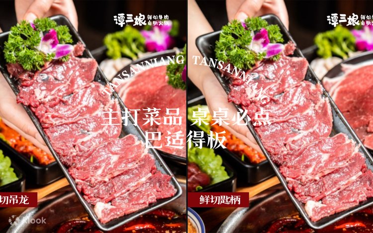 大健康时代,国民从“吃饱、吃好“到”吃健康”的饮食观转变,营养健康、新鲜美味的食材食品越来越受人们青睐。谭三娘鲜切生肉,致力于把健康、新鲜、老少皆宜的食材带给广大消费者,希望到店的每一位食客不仅可以吃饱、吃好,还可以吃得健康吃得实惠。无论是家庭聚餐、朋友聚会,生肉火锅都能够满足不同人群需求。食客们在此大口吃肉、放心享受。这是一个可以兼具健康、美味、档次感又可以放松欢聚的小聚场 (1)牛肉是鲜切,自助不限量 谭三娘鲜切牛肉,牛肉还是鲜切的好 (2)牛很鲜,不隔天 谭三娘鲜切牛肉,食材采自云贵川上等小黄牛,每天现杀,食材不隔夜、无腌制、无注水,牛肉现切现卖,看得到的新鲜,保证每一位消费者吃到的都是鲜嫩、健康的牛肉! (3)自助不限量,性价比之王! 坚持牛肉鲜切无限量的牛肉自助火锅,牛肉自由不是梦。在这里您可以大口吃肉,牛肉当饭吃,更有丰富特色菜品、小吃、酒水等无限量供应,全心全意只为您提供更具性价比的牛肉火锅! (4)吃不腻的新鲜好牛肉 精选优质辣椒花椒,正宗成都底料,奠定火锅好味基础。麻辣锅底爽辣浓郁;清汤锅底牛骨熬 汤清鲜可喝。秉承“牛肉鲜切才好吃”的至尚精神,还原食材的本真味道。鲜香麻辣、味道清爽,营养丰富,健康不上火,老少皆宜。火锅爱好者聚集地。每一口牛肉,都能让你流连忘返 Beef Hotpot Carnival: All-You-Can-Eat, No Language Needed! (牛肉火锅狂欢节:畅吃无限,无需语言!)