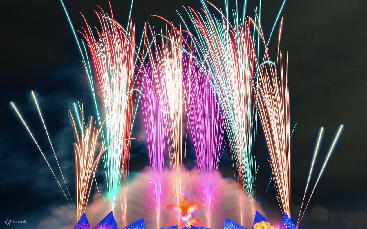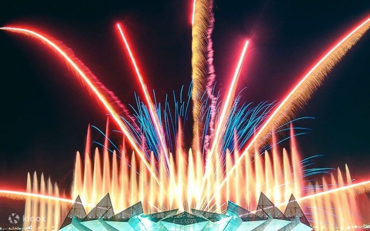 - 观看壮观的时光之翼灯光水舞秀