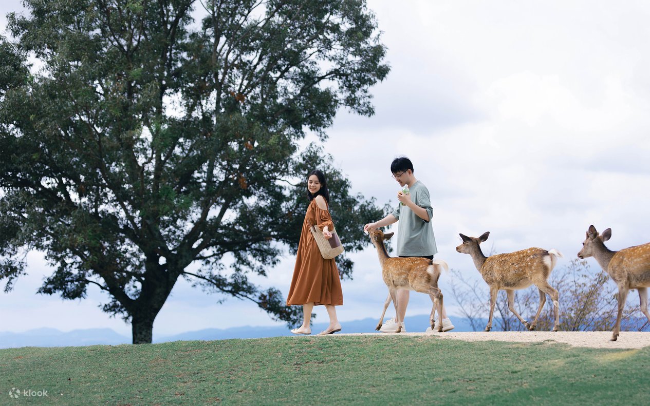 - 摄影体验从东大寺开始,接着前往奈良公园,并沿着春日大社的参道前进,您可以在这里与友善的鹿互动,并尽情享受奈良的文化与自然之美。