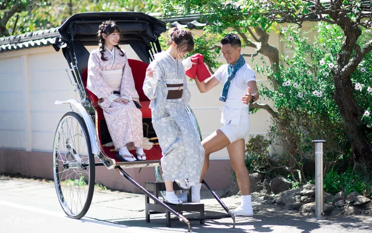 嚟镰仓,沉浸喺传统日本体验之中啦!✨着住和服,坐住「人力车」,绝对系喺城市嘅标志性景点影靓相嘅完美组合!📸💖 创造难忘回忆!