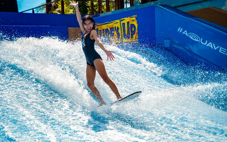 在巨浪池中沐浴阳光,尽情享受乐趣,您可以在我们的人造泻湖中享受漂浮在海浪上的乐趣。