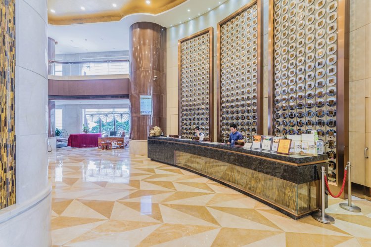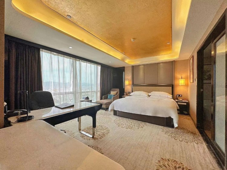 本店坐落于梅州市区美丽的梅江河畔,毗临梅江区文体中心以及知名的(客家博物馆,夜游梅江、千佛塔、文化公园、清水公园、院士广场、历史文化街区)等近在咫尺。 酒店是梅州市区地标建筑,是一家集住宿、餐饮、会议、娱乐、休闲观光于一体的高端豪华酒店。商务更便捷,配套豪华KTV厢房,保健、健身、棋牌、商场以及地下停车场等附属设施,旨在打造梅州集住宿、餐饮、会议于一体的高规格综合服务体。 酒店拥有温馨舒适的豪华客房,房内空间宽敞明亮,客房用品配备国际十大酒店集团优选的贡缎,手感柔软舒适;床垫软硬适中,让您尽享舒适、甜美的酣畅睡眠。房内提供24小时热水淋浴、中央空调、数码电视、麻将娱乐房,提供国内电话、宽带上网等服务,是您商务洽谈,休闲放松、购物便利的理想环境。 28楼360°景观餐厅融汇地方特色及各地健康美食,赏梅州美景,品客家美食,给您带来视觉和味觉的享受。尽显酒店“绅士般品味,淑女般亲切”的核心服务理念。豪华舒适的客房,专业齐全的会议厅,无不体现着我们“一切源于客户体验”的执着,更是您尊贵、品位之旅的开始。